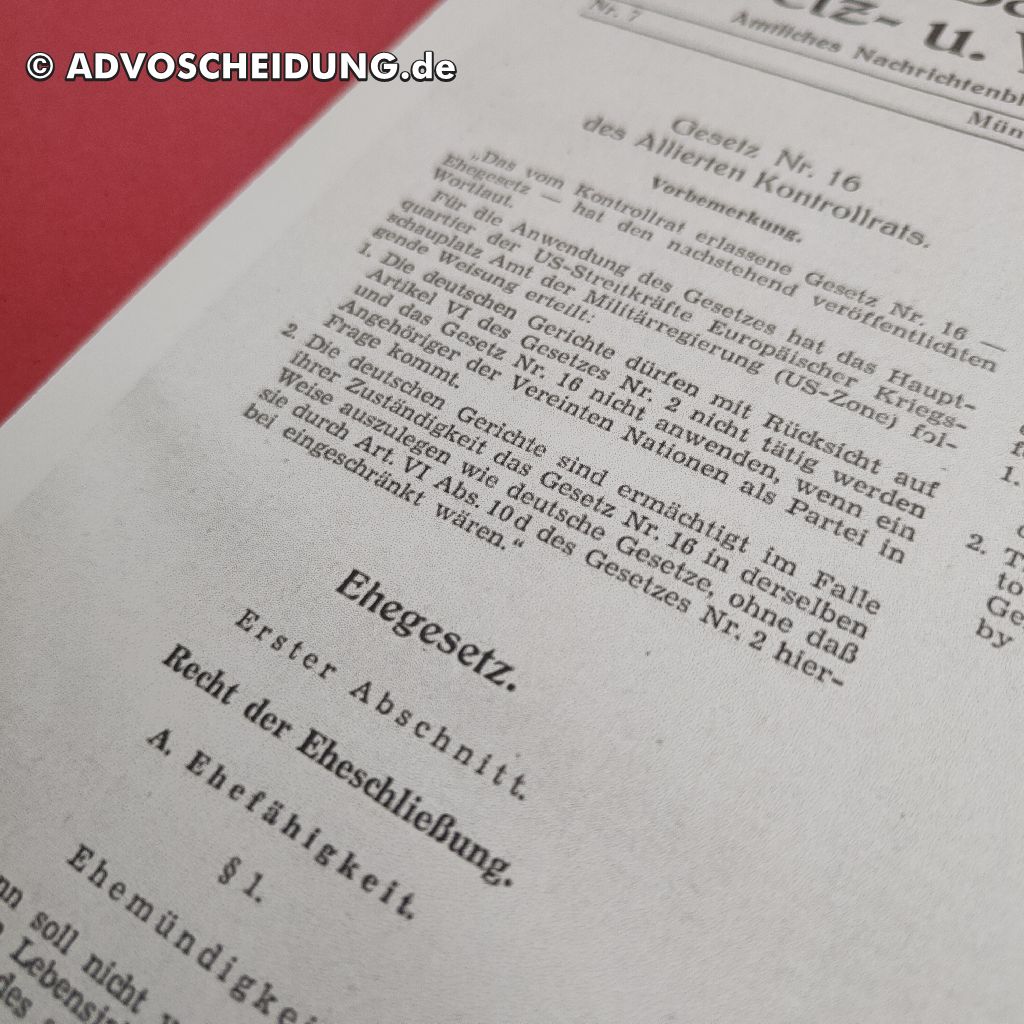 Kontrollratsgesetz Nr. 16: Link zur Veröffentlichung des Ehegesetzes am 11.06 1946 als PDF via verkuendung-bayern.de